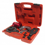 Для снятия/установки запрессованных элементов: шаровых опор, карданного шарнира с крестовиной, анкерных пальцев барабанных тормозов и других аналогичных работ. Размер струбцины: 165 мм. Размер насадок: 69 мм, 56 мм, 45 мм.