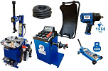 Комплект: шиномонтажный станок TS-21 для дисков: внешний 11÷20” + пистолет с манометром для подкачки шин + монтажка + пластиковые накладки на зажимные кулачки + регулятор давления с влагоотделителем и манометром. + TS-500 балансировочный станок с автозапуском, для колес легковых автомобилей и легких грузовиков, диаметр диска с резиной до 760 мм. размеры диска: ширина 3"–9” (76-228 мм), диаметр диска 10"–21” (254-533 мм). + кожух защитный + клещи + кронциркуль + быстрозажимная гайка + набор конусов + подкатной домкрат г/п 3,0т. 130-465мм. + ударный пневмогайковерт 1/2" крутящий момент 745Нм + шланг кислородный 9мм 20Атм. 10м