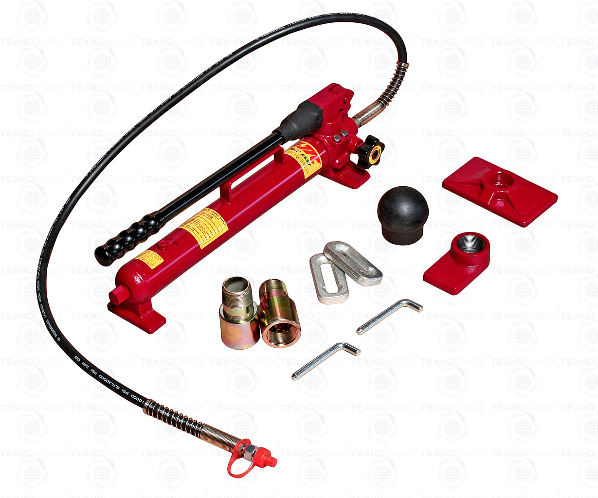 • Набор гидравлического инструмента представляет собой компактный и удобный в эксплуатации комплект из гидравлического насоса (1) и гидравлического цилиндра (3), с помощью которых создается рабочее усилие; удлинителей для упрощения работы (5-8); специальных фигурных соединяющих насадок (11-16), для надежного упора в детали кузова.