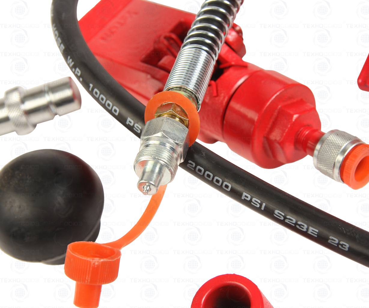 • Набор гидравлического инструмента представляет собой компактный и удобный в эксплуатации комплект из гидравлического насоса (1) и гидравлического цилиндра (3), с помощью которых создается рабочее усилие; удлинителей для упрощения работы (5-8); специальных фигурных соединяющих насадок (11-16), для надежного упора в детали кузова.
